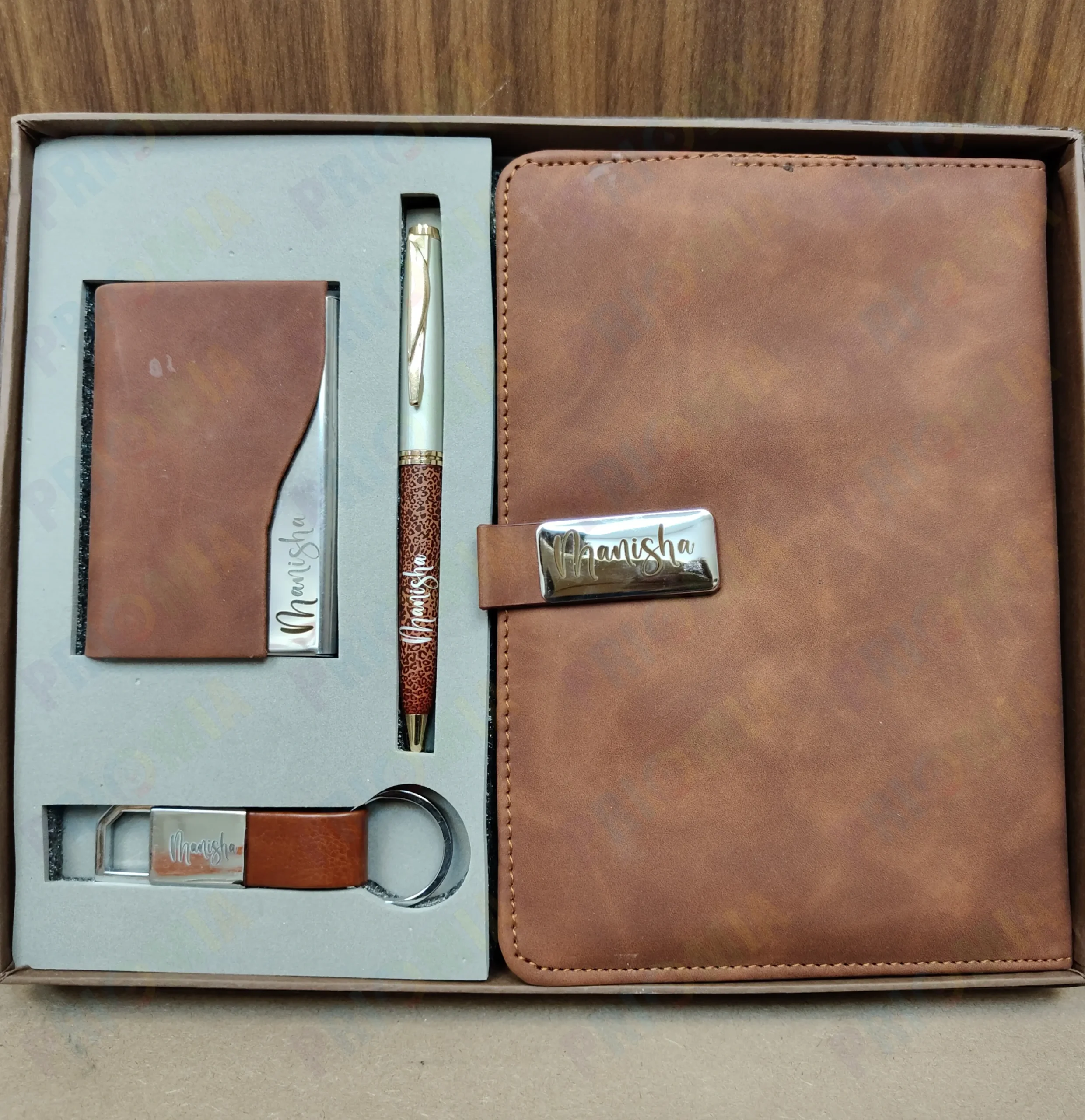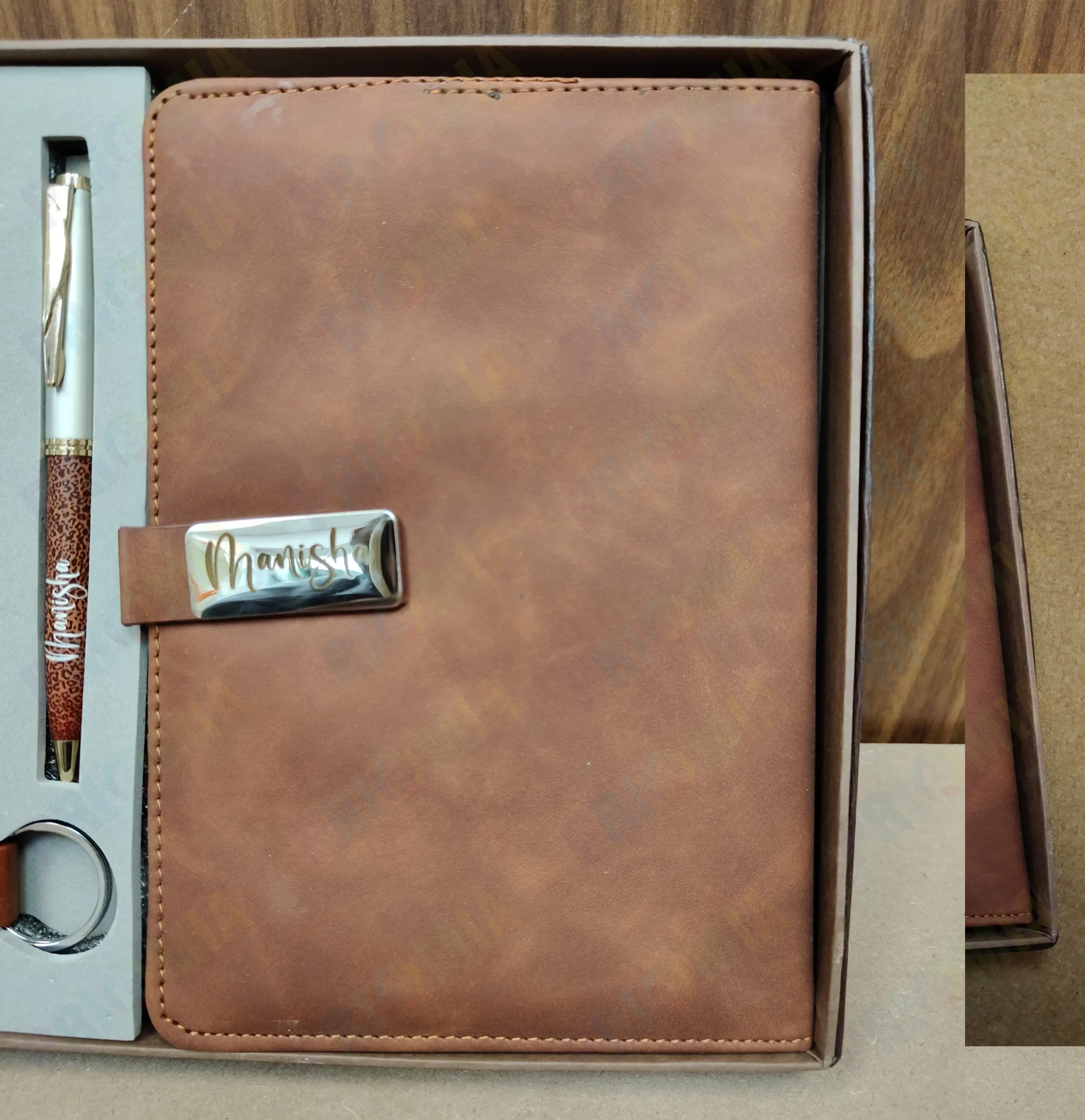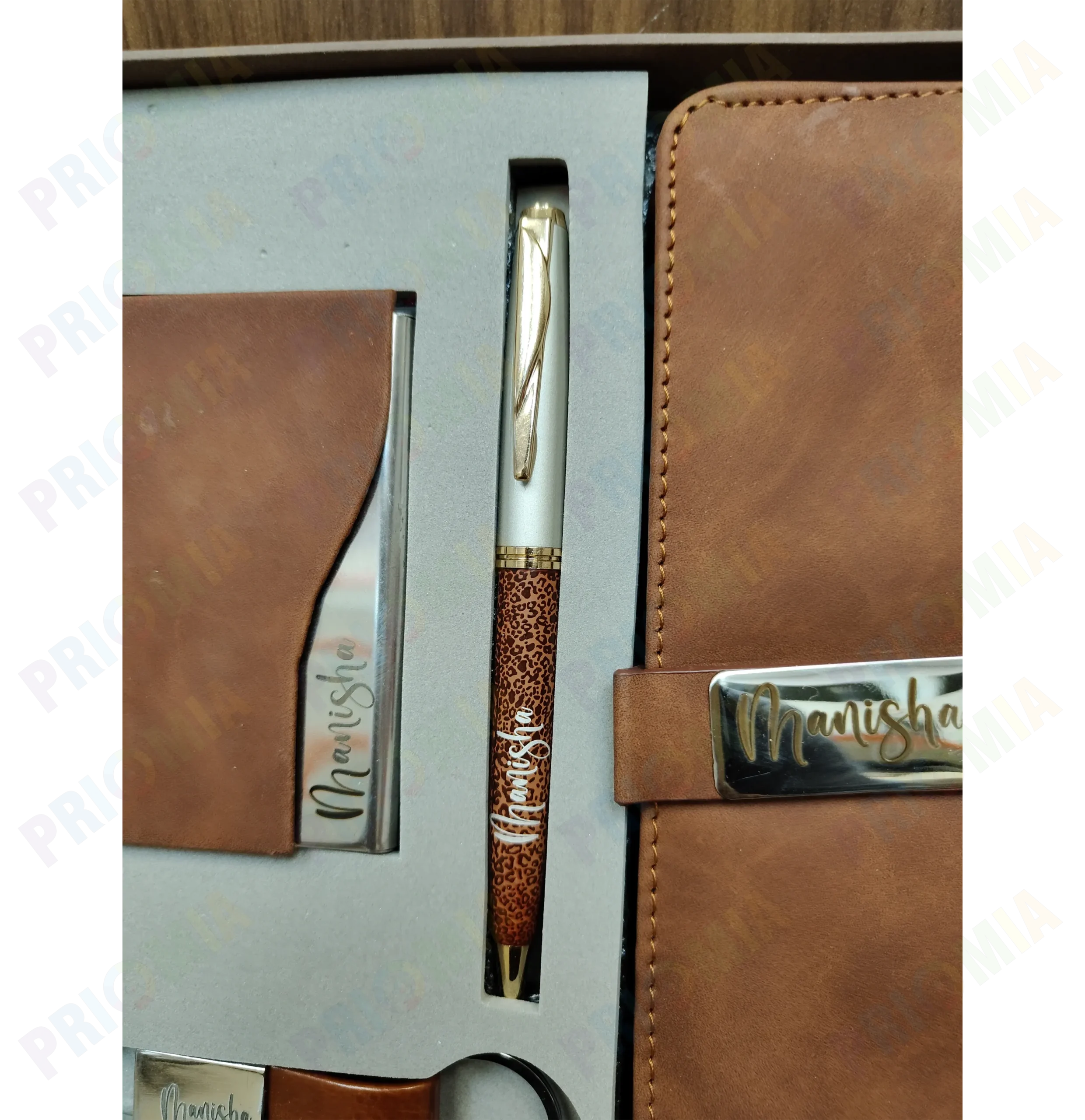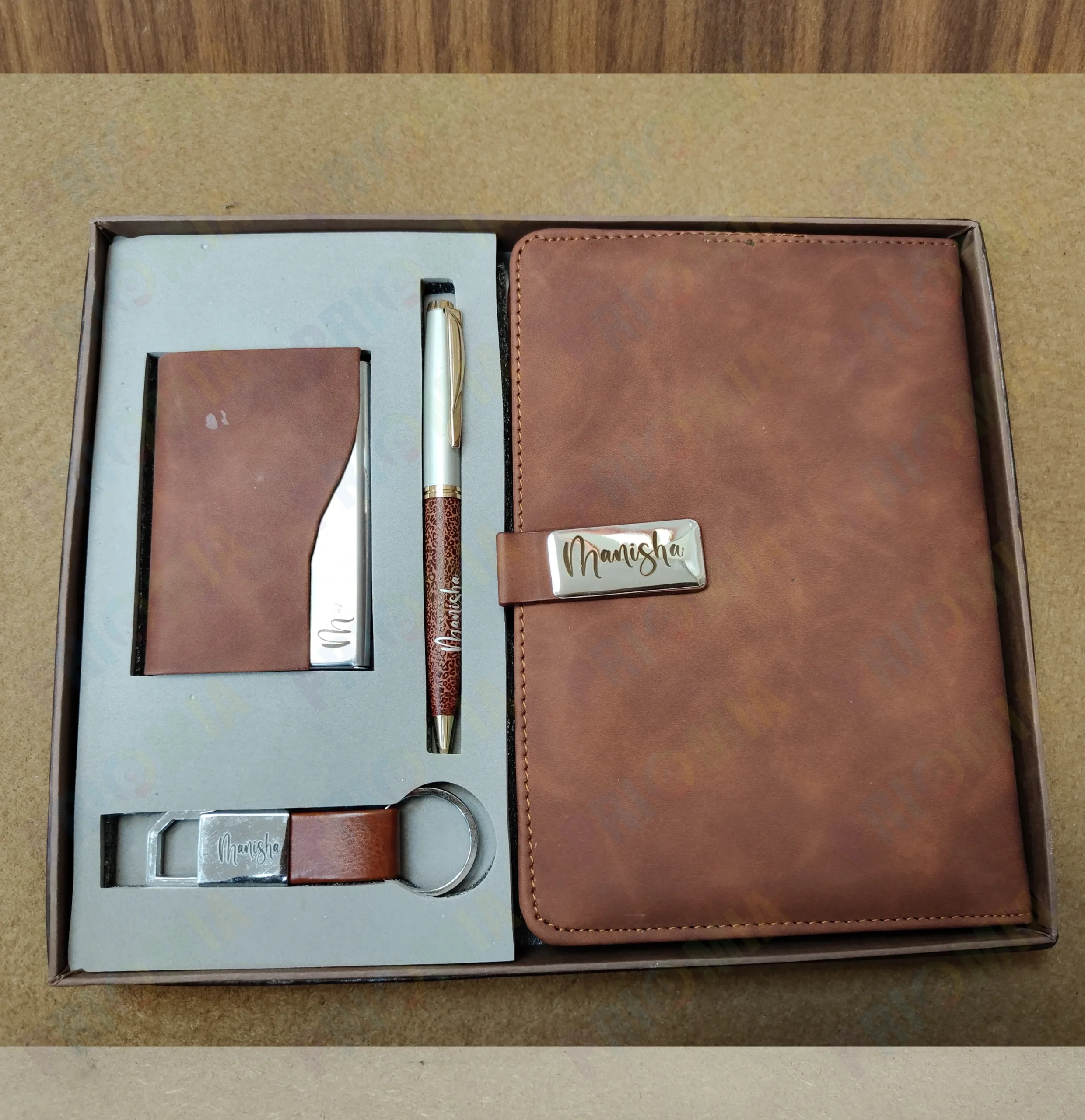 A typical gift set includes a high-quality leather diary, a matching pen, and sometimes additional items like a business card holder. Each component can be personalized, making the set unique and tailored to the recipient’s taste.