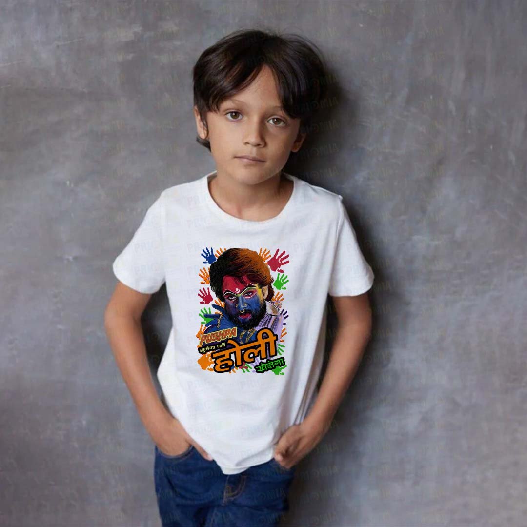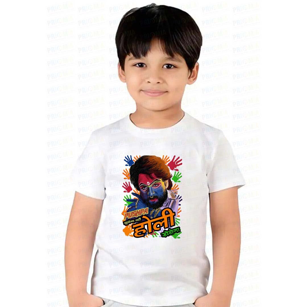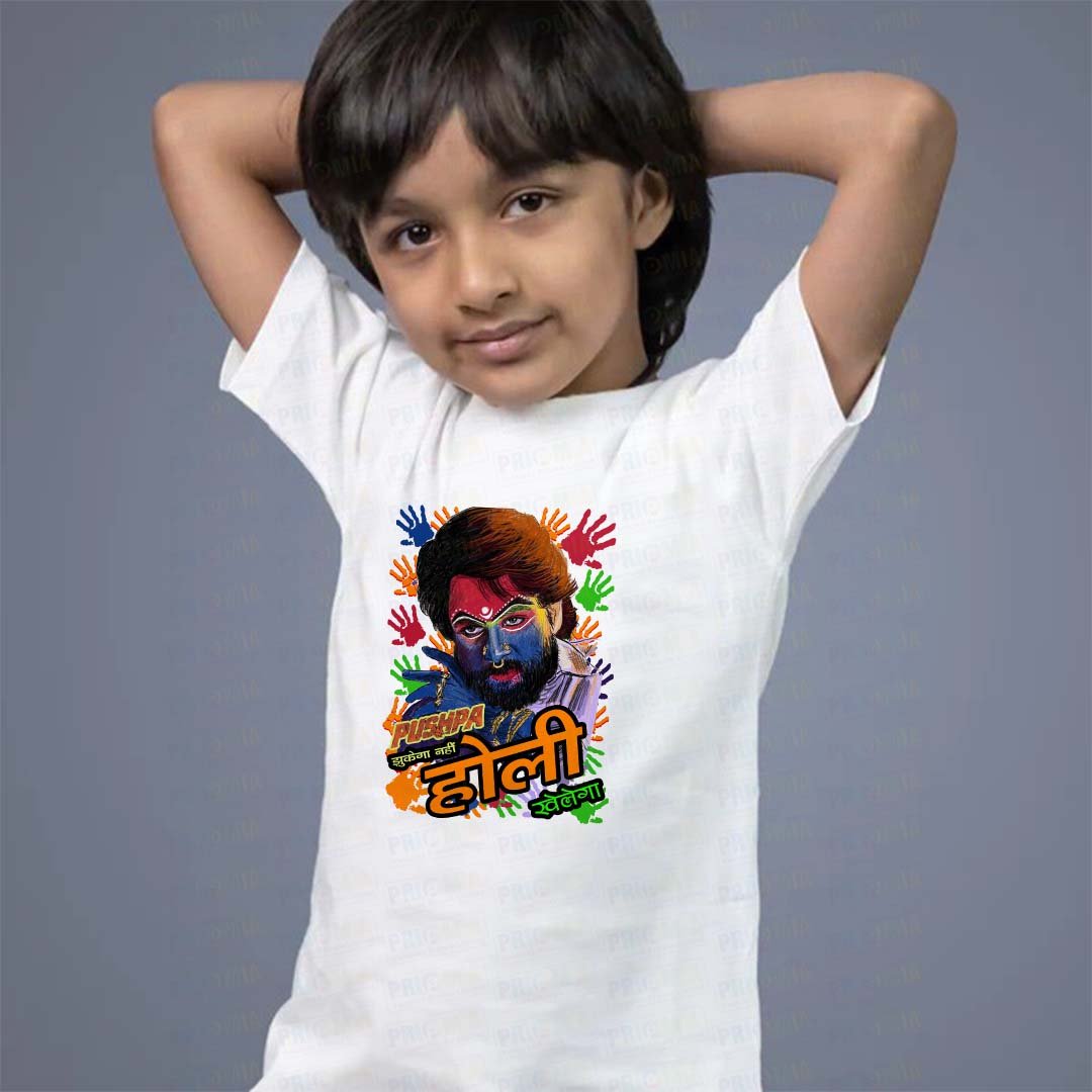 Since Holi celebrations often involve playing with colors, running around, and having fun, the T-shirts are made from soft, breathable materials. Cotton is one of the most popular fabrics used for these shirts because it is comfortable and light, helping kids stay cool while enjoying all the outdoor activities. Additionally, many T-shirts are designed with relaxed fits, so they are easy to move in.