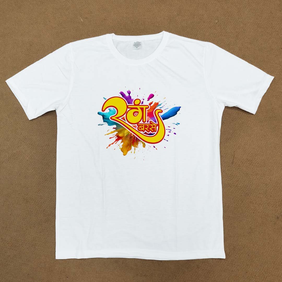The phrase “Rang Barse” is synonymous with Holi. A t-shirt with this iconic slogan embodies the festival’s excitement and energy.