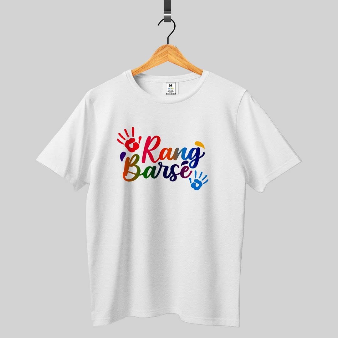 The phrase “Rang Barse” is synonymous with Holi. A t-shirt with this iconic slogan embodies the festival’s excitement and energy.